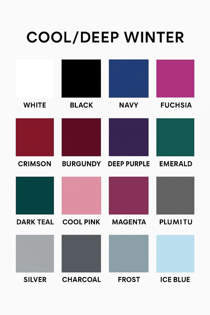 Tmavá zima je jedným z troch podtypov zimného farebného typu, pričom jeho dominantnou vlastnosťou je tmavosť. Kontrast medzi vašimi vlasmi, očami a pokožkou je vysoký, podobne ako u Jesene, ale s výrazne chladnými podtónmi.